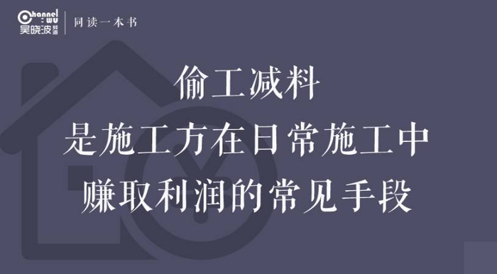 施工方想把项目从开发商手里拿下,是以竞标的方式,比哪个施工方的价格更低,在这样的基础上,施工方实际已没有什么利润可言。要想获得利润,他们会选择这三方面入手,一是工程款主合同;二是规划变更,比如原定这个房子是要这么盖的,但是在施工的过程中发现这么盖不行,要拆掉重盖,这样的话就得额外付钱给施工方;三是偷工减料,其实偷工减料在日常生活中非常普遍,因为他们知道,反正你们也团结不起来,也打不起官司,收了房之后也根本看不出来。