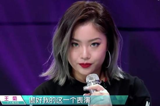 王菊的出现在前期就是一个被忽略的事故。她是以个人练习生的身份出现在排位赛中,本来已经被刷下来了,她是一个不重要的存在。但是呼声很高的3unshine的Abby主动退赛后替补上去的。
