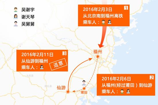 2月3日那列高铁从北京南出发往福州那天,吴谢宇从河南郑州飞往上海。(除非他从郑州飞上海,再从上海飞北京,还能赶上那班火车……)