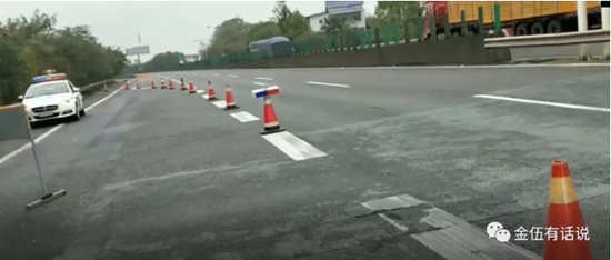 ▼被吊车老板用小车前后夹击堵在衡南服务区的大件运输车