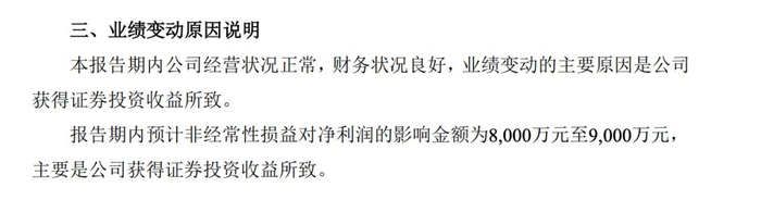 果然,业绩预告解释变动的主要原因是公司获得证券投资收益所致。报告期内,预计非经常性损益对净利润的影响金额为8000万元至9000万元。也就是说,御银股份2019年靠炒股挣了至少8000万!