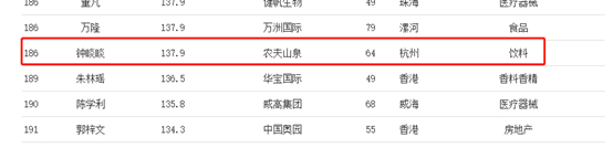 2019年11月7日,钟睒睒以137.9亿身价位列福布斯中国400富豪榜第186位。