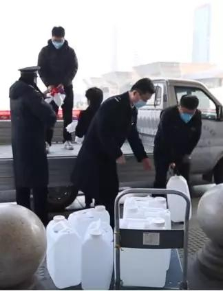 一位热心小哥哥开着大卡车,送来500斤消毒液原液。