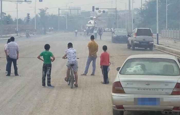 “一辆直升飞机降落在石羊镇滨河路,停留了约10分钟时间左右。在这段时间内,所停的道路禁止车辆和行人通过”,很快当地人便知道那是永鸿塑料厂老板肖方林的儿子肖永明。