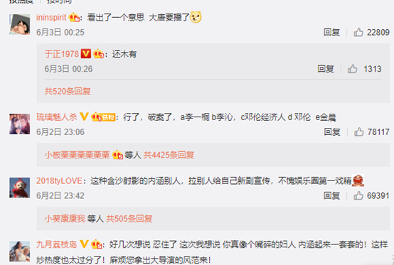 不过,于正的骚操作满足瓜友们吃瓜乐趣的同时,也为自己带来了过渡营销、戏精的质疑。