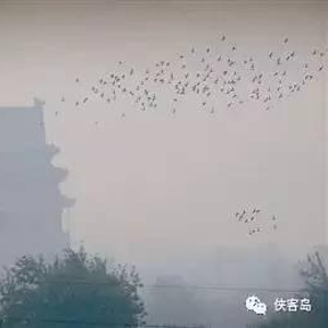 “阴霾的天空下依然有鸽子在飞翔”