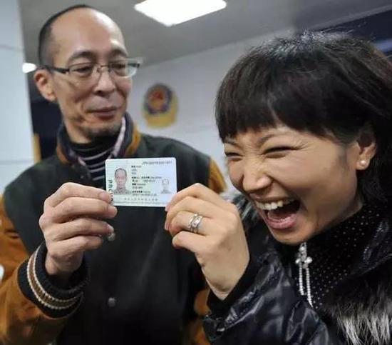 ▲拿到中国绿卡后,一对夫妻乐开了花(东方IC)