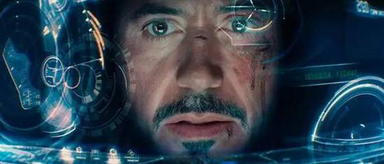 小罗伯特唐尼在《钢铁侠》中操纵机甲时的操作界面还是蓝色。