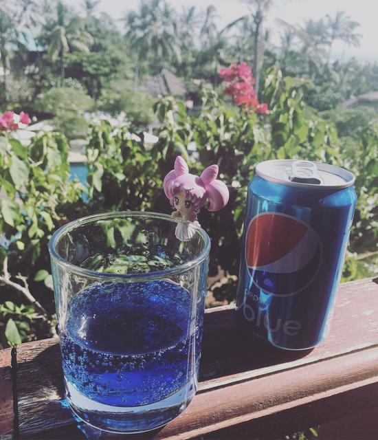 起因是有个人在微博上发了一张巴厘岛特供的蓝色百事可乐,放在杯子里看起来特别的好看!但是!没人觉得这个颜色和这个感觉特别的像漱口水么?