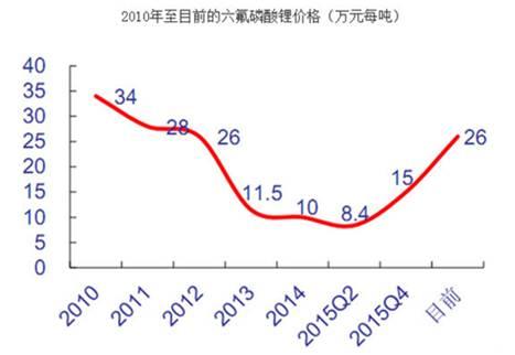 随后日本企业为夺回市场份额被迫降价,导致六氟磷酸锂价格由2010年的34万元每吨下降至2015年第二季度的最低点8.4万元每吨,竟然下降了四倍之多,可见当初日本人赚了多少钱。