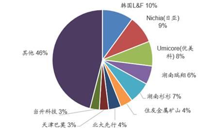 国外的竞争对手主要是韩国企业优美科和L&F两家,日本企业日亚化学和住友金属两家,都是三元材料为主。例如日亚化学大部分是NCM,住友金属的NCA主要给松下供货,松下是特斯拉的供应商