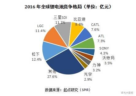 从上面2016年的销售额,我们可以看到锂电池世界前三名都是日本韩国企业:第一名松下230亿人民币,第二名LG210亿人民币,第三名三星SDI 205亿人民币。都是200亿人民币以上。
