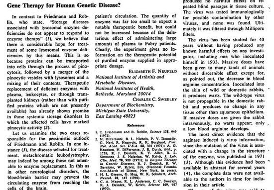 但是,基因治疗的真正起始和尝试还需要耐心等待:1970年,美国医生斯坦菲尔德·罗杰斯(Stanfield Rogers)试图通过注射含有精氨酸酶的乳头瘤病毒来治疗一对姐妹的精氨酸血症,试验失败了。尽管这次失败的尝试并未对患者造成伤害,但是在一个对基因、基因工程、病毒载体和疾病都了解不多,对其中某些环节一无所知的“前基因治疗时代”,甚至可以说是前现代生物学和医学时代,在监管完全缺失的情况下,这次实验显然是非常大胆的,某种程度上可以说是鲁莽草率,操之过急。不过,这也从侧面反映了相关疾病的凶险和患者在绝望时治疗需求的迫切。