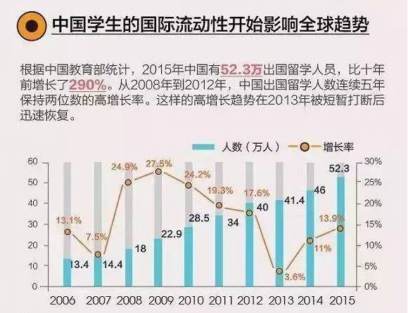 中国家庭金融调查与研究中心的4万人采样调查显示,仅3%的中等收入者有移民的倾向,但他们中的30%有将下一代送出国的意愿。邓博夫说:“这几年,中国阶层分化现象突显,他所教的学生中,农村的孩子越来越少。如果中国的中产精英阶层将自己的下一代都送到国外,未来中国将面临精英空心化的发展尴尬。”(经济参考报)
