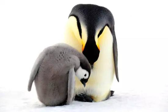 60多天以后,小企鹅终于破壳而出。此时,企鹅爸爸的体重差不多已经减少了一半,精疲力尽,几乎没有什么力气再爬到那些可以捕食的裸露海面。他接下来的任务,是保护好小企鹅,这也是一项艰巨的任务。